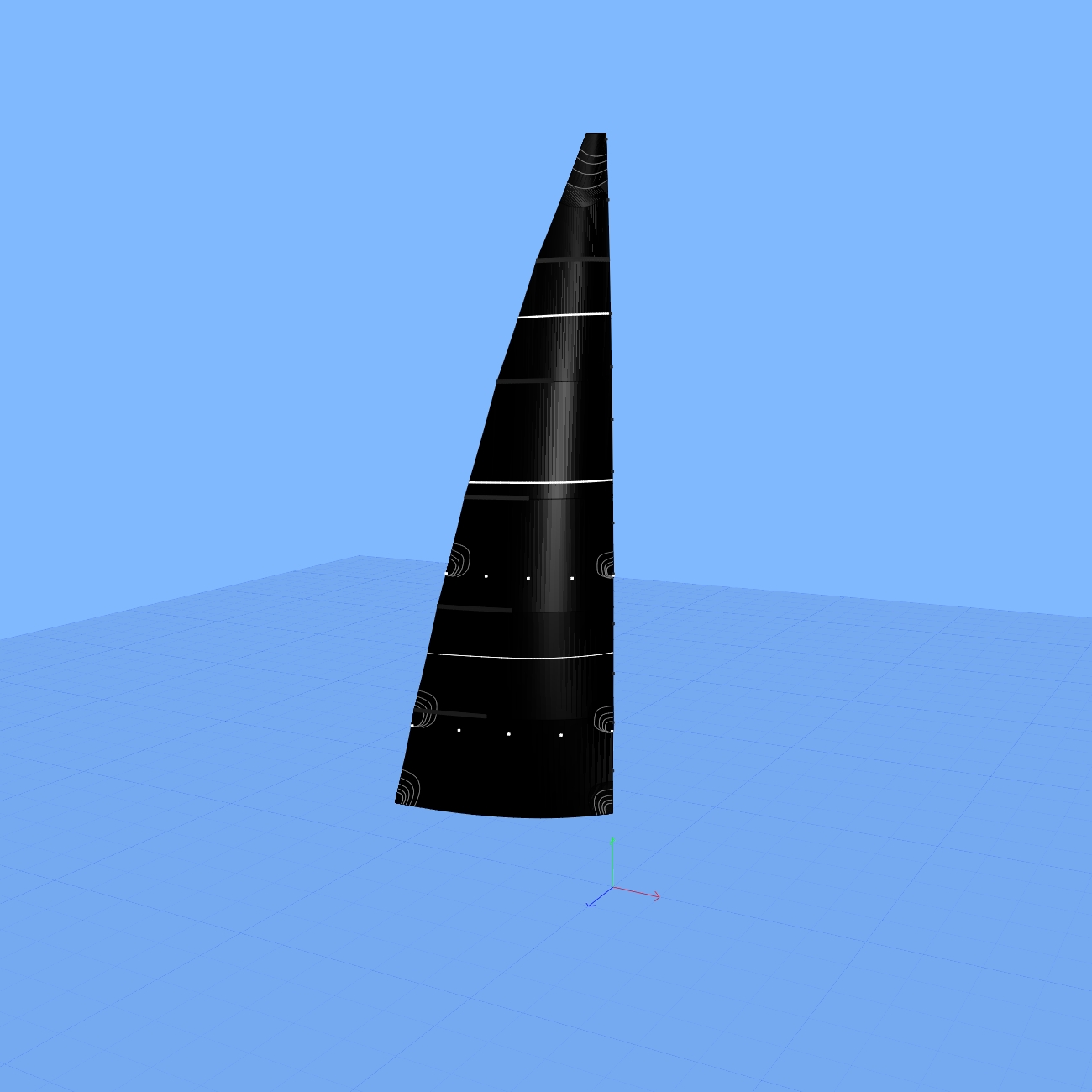 Mayor con 33.2 m2, un sable forzado y 4 de Valuma, 1 rizo + rizo de 50%, leech line a cazar en gratil, Cuningham, speed stripes, Tell tales, Numero